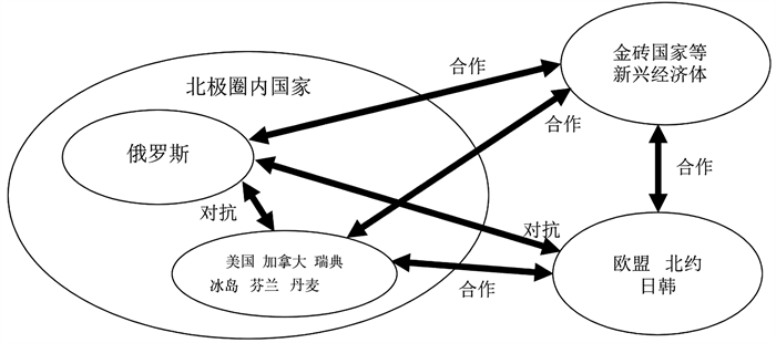 北极作为俯视北半球的战略制高点,在冷战时期就是美国、苏联两方进行安全博弈的关键场所。作为北极最大的国家,在“北极北约化”背景下,俄罗斯主张国际格局应朝多极化方向发展,并对美国的单边主义倾向持遏制态度。[8]随着国际格局向多极化方向演进,北极不再仅是美俄两国大国竞争的中心地带。随着新兴国家对北极的兴趣日益增加,北极治理参与方越来越多,参与领域不断扩大,为全球治理注入了新的力量。