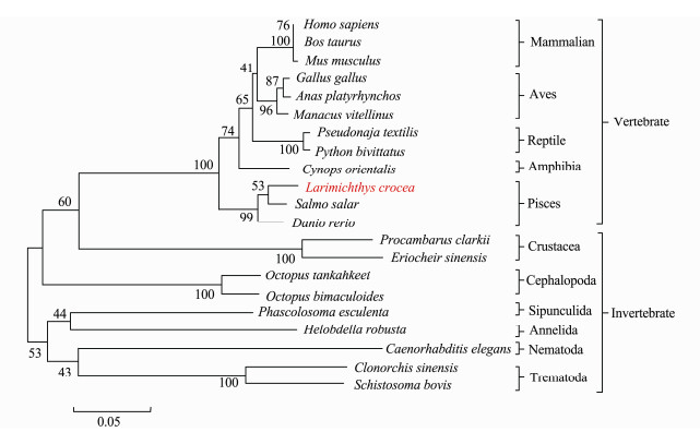 The phylogenetic analysis revealed an evolutionary relationship between PHB proteins (Fig.5). Lc-PHB together with its homologues in vertebrates formed a branch that was the closest to the fish PHB among the examined species. The evolutionary relationship of the Lc-PHB protein agreed with that of L. crocea.