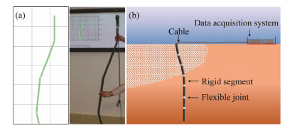 2 Characteristics of Micro-Electromechanical Accelerometer-ArrayThe accelerometer-array shown in Fig.1 (produced by Measurand Inc.) is a rope-like array. It consists of a number of rigid segments. Each segment hosts a triaxial microelectromechanical accelerometer and is connected to adjoining segments by flexible joints (Fig.1) that allow the movement in any direction, but resist twisting motions (Wang et al., 2018b). The accelerometer-array has the accuracy of ± 0.18 mm per 4 m.