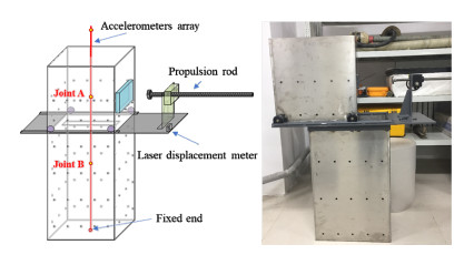 A simulation test chamber (Fig.3) was designed and processed for the experiments on accuracy of accelerometerarray in soil failure deformation measurement. The test chamber consists of two parts, the upper and lower chamber, 0.5 m, 0.8 m in height respectively, 0.5 m long, and 0.3 m wide. The upper chamber can be pushed forward along the track by the propulsion rod. During tests, the simulation test chamber was filled with soil and the accelerometerarray was placed vertically in the middle of the chamber. The sidewall of the chamber is provided with small holes, and the geotextile is pasted inside to facilitate the rapid drainage and consolidation of the soil. Soil deformation would be driven by the test chamber, and the soil deformation is compared with the deformation measured by the accelerometer-array to quantify the measurement accuracy.