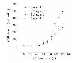 2.3 Chronic Toxicity TestThe inhibition effect of gemcitabine on the growth of E. vannus was also investigated in 48-well culture plates at 25℃. To each well, 1 mL of test solution and ten E. vannus cells were added. The concentration of bacteria in each well was maintained at 108 cells mL-1 by adding Vibrio sp. The tests were performed using five different concentrations of gemcitabine, 0, 0.7, 3.5, 7, and 14 mg mL-1, with three replicates of each concentration. The ciliate cells in each well were enumerated in vivo every 12 h under a stereomicroscope for up to 120 h.