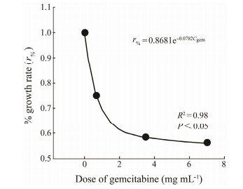 where r% is the growth rate with inhibition of gemcitabine, and Cgem is the concentration of gemcitabine; R2 = 0.99 and P < 0.05.