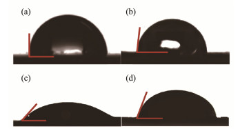 Fig. 2 Contact angle of different anodes. (a), MSMFC-0; (b), MSMFC-50; (c), MSMFC-200; (d), MSMFC-400. |