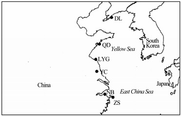 Fig. 1 The locations along the North China coast where the Nassarius were collected. DL, Dalian; QD, Qingdao; LYG, Lianyungang; YC, Yancheng; NB, Ningbo; ZS, Zhoushan. |