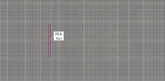 图 13 网衣周围及自由液面网格加密示意图 Fig. 13 Mesh encryption diagram around the net and free liquid surface |