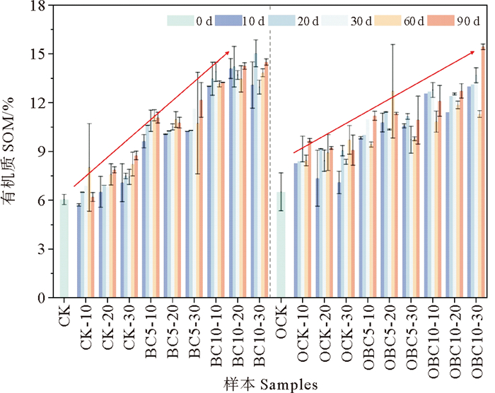 图 4 修复过程中有机质SOM的变化 Fig. 4 Changes of SOM during the experiment |