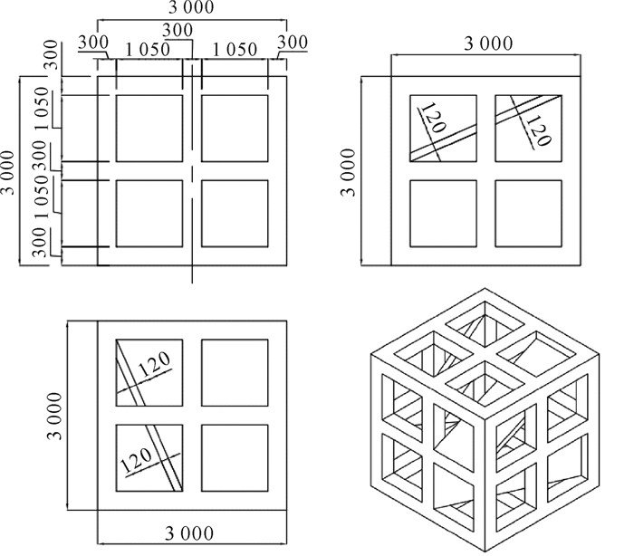 图 1 人工鱼礁模型示意图(单位:cm) Fig. 1 Schematic diagram of artificial reef model (Unit: cm) |