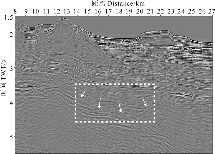 图 9 时域变换道曲波域滤波法衰减多次波后的偏移剖面示例 Fig. 9 Migration section after multiple attenuation using the time-domain transformed trace curvilinear wave domain filtering method |