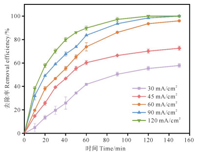 图 6 电流密度对微藻去除效果的影响 Fig. 6 Effect of the current density on the inactivation of algae |