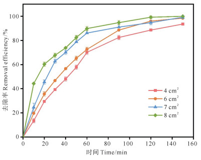 图 7 电极面积对微藻去除效果的影响 Fig. 7 Effect of the electrode area on the inactivation of algae |