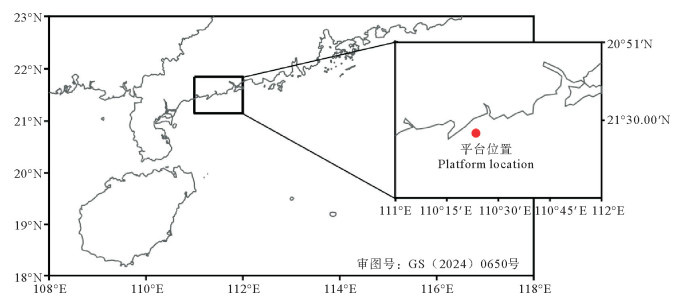 1 观测数据和质量控制观测数据均来自广东博贺茂名海上综合观测平台(111°23.5′E,21°26.5′N),该观测平台距海岸6.5 km,平均水深约14 m(见图 1)。利用CSAT3超声风速仪对三维风速进行了快速观测,采样频率设置为10 Hz。两套数据的观测时间分别是2012年1月18日至6月27日和2021年1月3日至4月13日,测量高度距离海面分别为19和6 m。