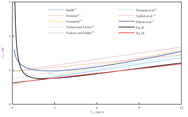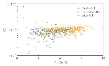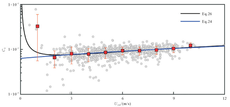 | $ \begin{equation*} C_{D}=\left(\frac{u_{*}}{U_{10 \mathrm{~N}}}\right)^{2} 。\end{equation*} $ | (23) |