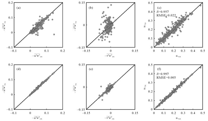 | $ \begin{equation*} \frac{\boldsymbol{\tau}}{\rho}=-\left(\overline{u^{\prime} w^{\prime}}\right) \boldsymbol{i}-\left(\overline{v^{\prime} w^{\prime}}\right) \boldsymbol{j} 。\end{equation*} $ | (2) |