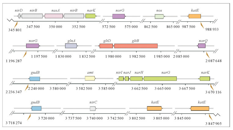 图 7 位于菌株C3基因组上的氮转化基因的示意图 Fig. 7 Nitrogen transformation genes in strain C3 genome |