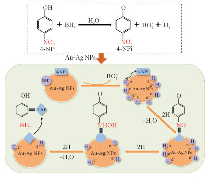 图 9 Au-Ag NPs催化还原4-NP的机理图 Fig. 9 Mechanistic diagram of the catalytic reduction of 4-NP by Au-Ag NPs |