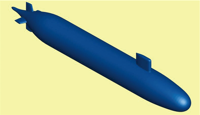 本文采用美国国防高级研究计划局Suboff标准潜器模型作为研究对象,如图 2所示,潜器的结构由前体、平行中体、后体以及附体四部分组成,其中附体包括指挥塔与尾翼。潜器模型的主尺度如表 1所示。