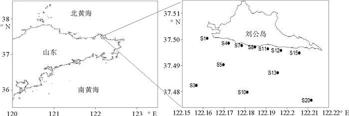图 1 2014年4月刘公岛海域调查区域和站位 Fig. 1 Investigation area and sampling stations in the south of Liugong Island in Apr. 2014 |