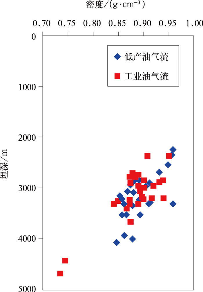 图 13 济阳坳陷页岩油原油密度随埋深变化图 |