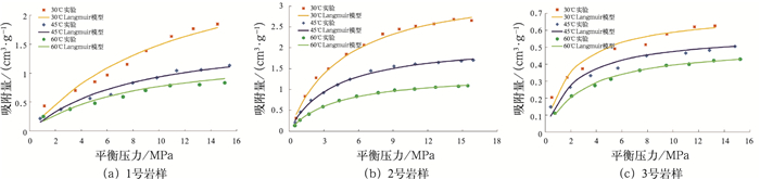 | 表 4 岩样实验数据与Langmuir模型拟合相关参数 |