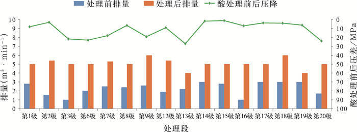 图 15 玛东1号水平井酸处理前后压力与排量变化 |