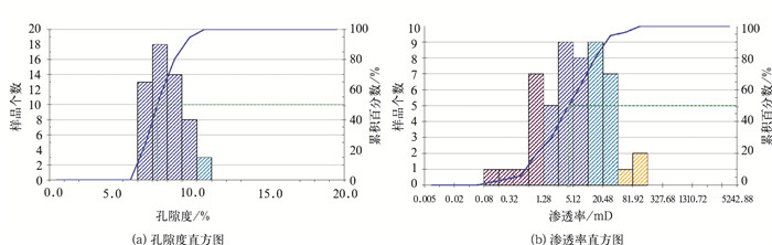 图 3 玛东2井区块P2w4段油层物性分布直方图 |