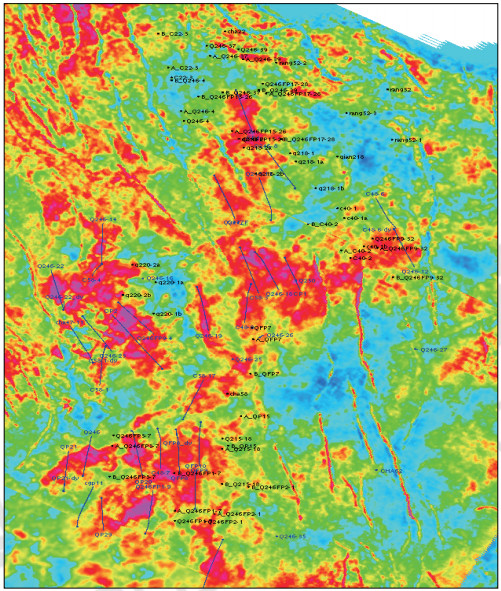 转变以往工作思路:处理上应用OVT域、黏弹性各向异性偏移处理等技术,合理拓展频带、消除边界效应,突出保真、保幅处理;解释上突出精细和质控,应用地震沉积学理论指导层位解释,不穿层;预测上突出地质与地震特征的匹配与识别,寻找敏感属性、识别地震剖面异常特征,在地震上寻找“甜点”指导部署[30]。