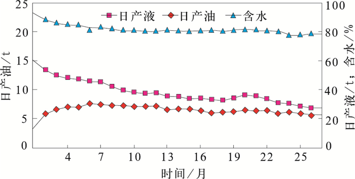 图 6 乾安地区致密油水平井采油曲线图 Fig. 6 Oil production curve of tight oil horizontal wells in the Qian'an area |
