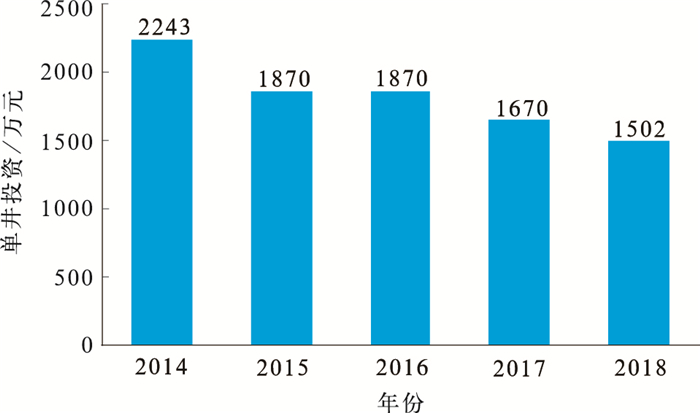 二是市场化运作,实现了降本增效。打破常规、突破传统,依托方案优化、技术进步、市场化相结合,通过多轮次市场化招标、工程总承包及商务洽谈等方式,单井投资实现大幅度下浮,由原来的2243万元下降至1502万元(图 7),下浮了33%,在油价55美元/bbl的情况下,内部收益率指标达到中国石油天然气股份有限公司的考核要求,推动了吉林探区低品位致密油资源实现效益动用。