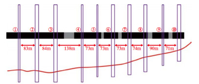 4 现场应用TP1井是针对临汾区块5号煤层部署的一口多段压裂水平井,由于受到邻井位置及钻井成本的限制,2015年8月完钻,水平段长度为1017m,共压裂了10段。由于第③、④段之间存在夹矸层,所以两段间距较大,其他压裂段间距在70~90m,如图 18所示。该井于2016年1月投产,初期井底压力为8.6MPa,排水降压8个月后于2016年9月见套压,后期稳产气量可达6000m3/d,平均产水量为4.5m3/d,如图 19所示。