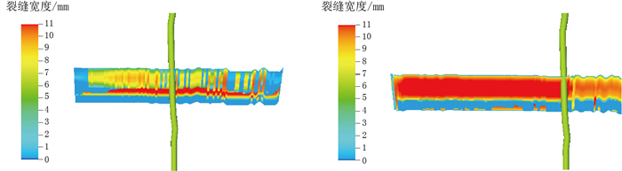 图 17 1.5m3/min和8.5m3/min排量下裂缝形态 Fig. 17 Fracture patterns with displacements of 1.5 m3/min and 8.5 m3/min |