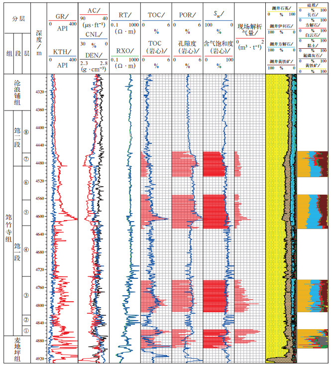 图 4 川南地区页岩气五峰组—龙马溪组综合柱状图 Fig. 4 Comprehensive stratigraphic column of Wufeng-Longmaxi formation in Southern Sichuan Basin |
