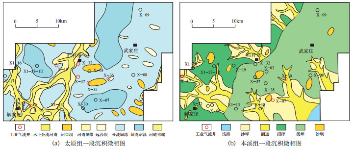 图 11 鄂尔多斯盆地神府地区X1-39井太原组一段沉积微相特征图 Fig. 11 Sedimentary microfacies characteristics of the first member of Taiyuan Formation in Well X1-39, Shenfu block, Ordos Basin |