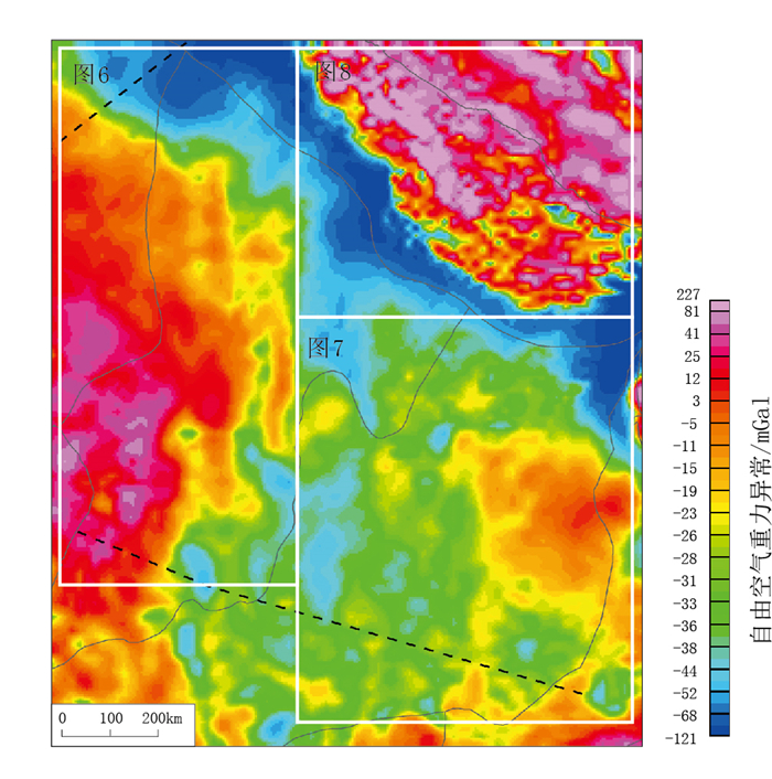 图 5 研究区EGM自由空气重力数据(位置见图 4) Fig. 5 EGM free air gravity data in the study area (location is in Fig. 4) |