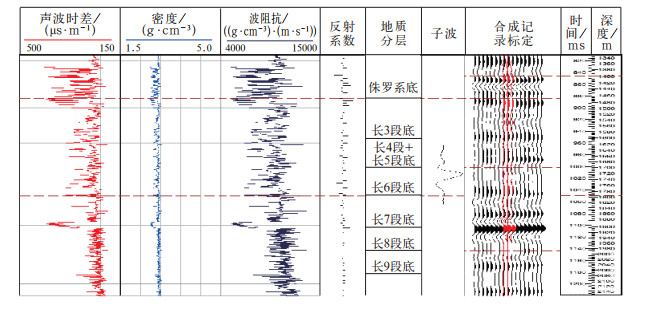 图 5 宁县—正宁地区N204井合成记录标定图 Fig. 5 Synthetic records calibration of Well N204 in Ningxian-Zhengning area |