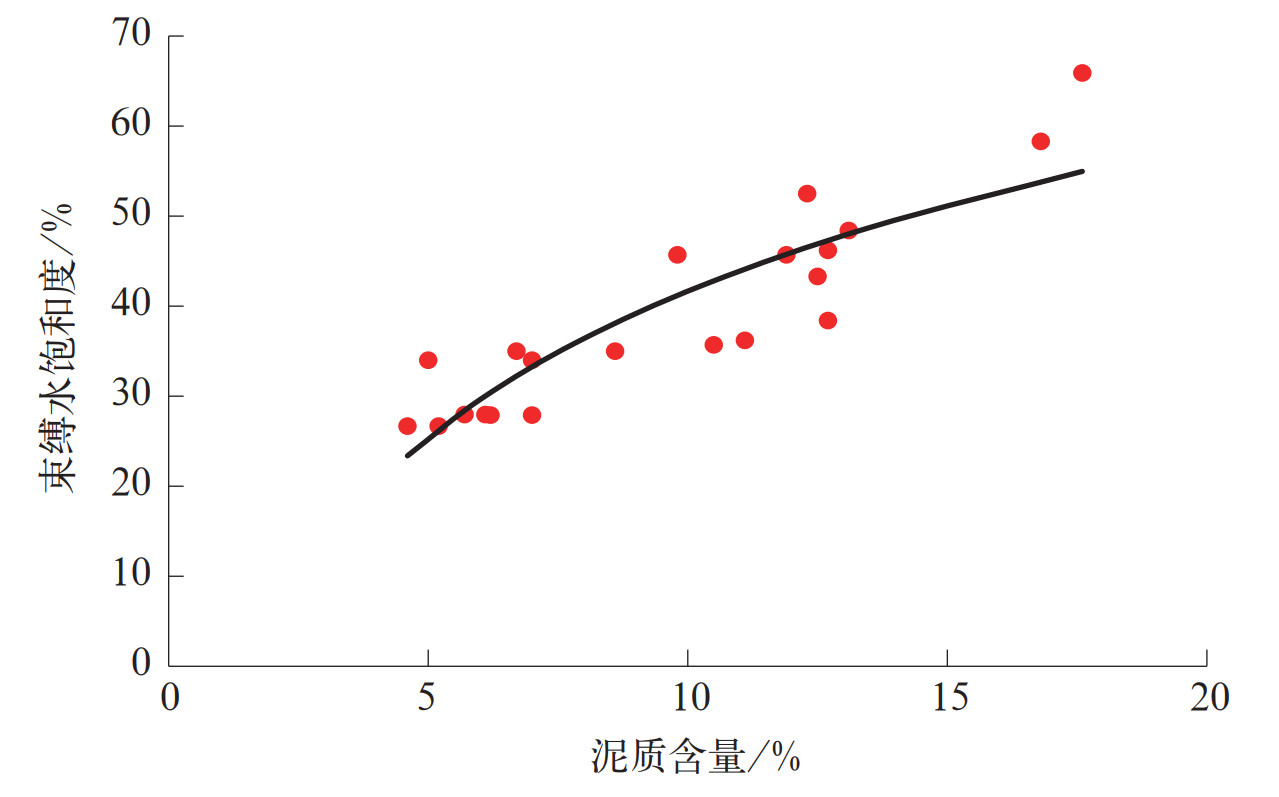 图 12 研究区长8低阻油层泥质含量与束缚水饱和度关系图 Fig. 12 Relationship between mud content and bound water saturation of low-resistivity oil layer in the eighth member of Yanchang Formation in the study area |