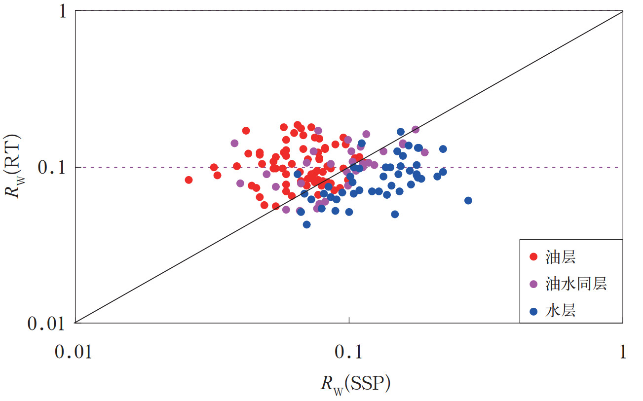而基于储层电阻率得出的地层水电阻率其数值易受含油性影响,表达式为