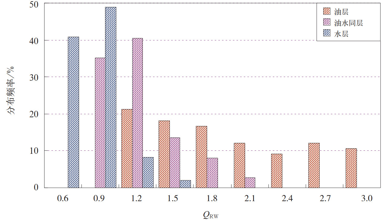 图 16 QRw分布频率与流体类型对应关系 Fig. 16 Corresponding relationship between QRw distribution frequency and fluid type |