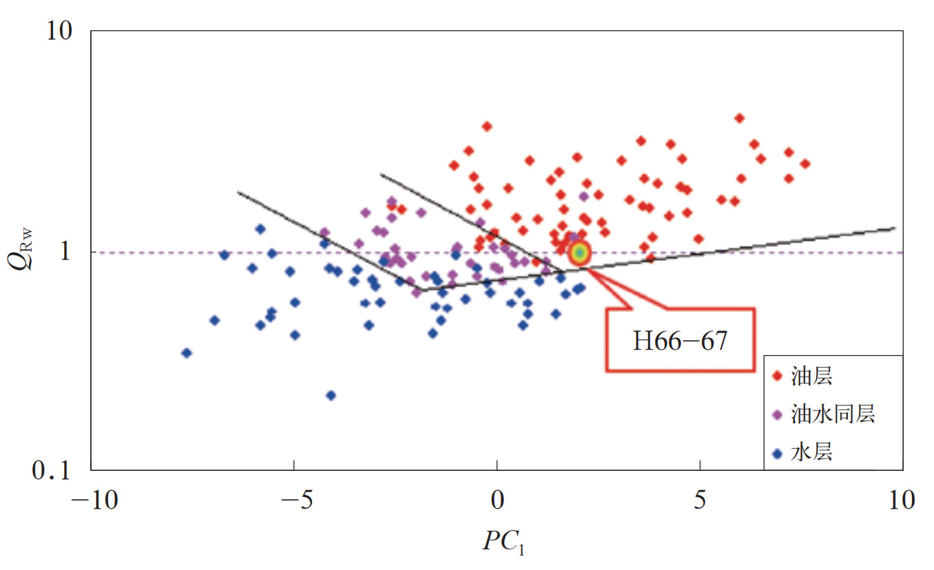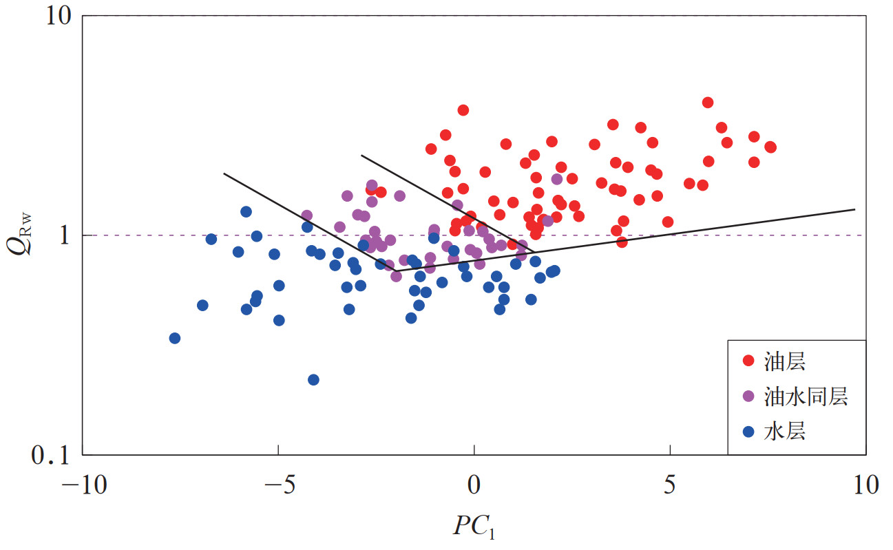 (2)针对研究区低阻油层流体识别难题,通过人工神经网络分类器模型以6类关键影响参数为变量形成了主影响参数PC1,同时构建了储层表征参数QRw,最终综合建立了QRw与PC1交会图版,油层、油水同层、水层呈现出良好的分区性。