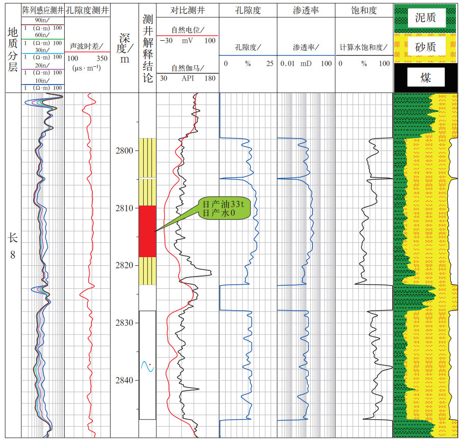 图 2 研究区井1长81测井解释成果图(井1位置见图 1) Fig. 2 Logging interpretation results of the first sub-member of the eighth member of Yanchang Formation in Well 1 in the study area (well location is in Fig. 1) |