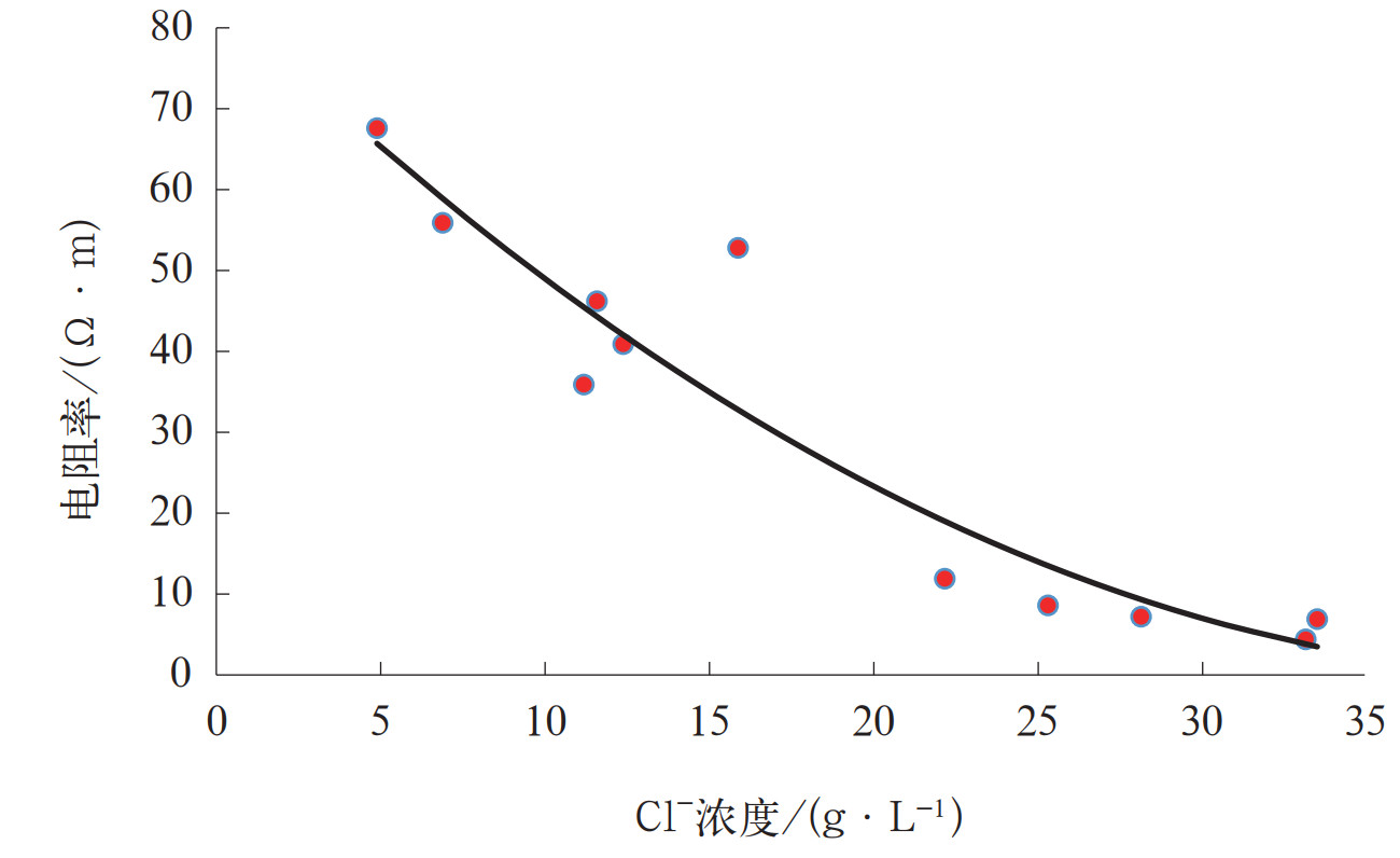 图 5 研究区与邻区长8储层Cl-浓度与电阻率交会图 Fig. 5 Cross plot between Cl- concentration and resistivity of reservoir in the eighth member of Yanchang Formation in the study area and adjacent areas |