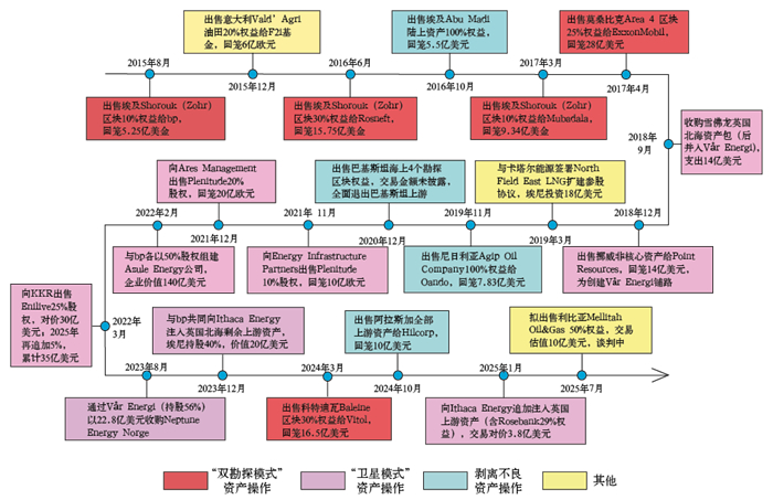 图 2 2015年以来埃尼集团上游资产运作大事记示意图 Fig. 2 Chronicle of Eni Group's upstream asset operations since 2015 |