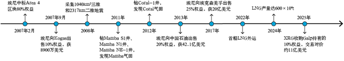 图 3 莫桑比克Area 4区块大事记示意图 Fig. 3 Operational chronicle of Mozambique's Area 4 Block |