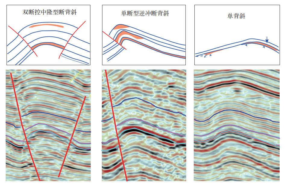 (4)基于构造样式差异提出针对性开发模式:冲起构造区采用“稀井网+大斜度井”组合模式、单背斜区采取“长水平段水平井(高点部署)”组合模式、断背斜区采取“大斜度井+水平井”组合模式。