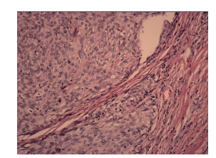 | FDCS瘤细胞多为短梭形,呈束状、片状排列. 图 1 术后病理检查结果×20 |