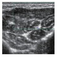 患者于2017年11月至2018年1月随访期间肿瘤复发,多次行手术部位及腋窝淋巴结超声检查。肿瘤复发时多表现为不均质低回声,肿瘤复发可侵及肌层,致肿瘤与及肌组织界限不清,周围可见积液。治疗期间于本院行放射治疗25次,并未见腋窝淋巴结转移。