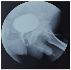 | 图 2 术前顺行尿道造影 Fig.2 Preoperative voiding cystourethrogram |