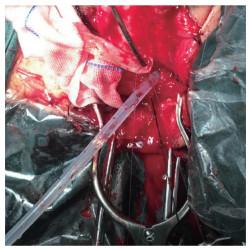 | 图 6 缝合狭窄段近端与黏膜条近端 Fig.6 Purethra and proximal mucosal were sutured |