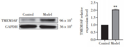 | ** P < 0.01 vs control group. n = 3. 图 2 TMEM16F蛋白表达情况 Fig.2 The expression of TMEM16F protein |
