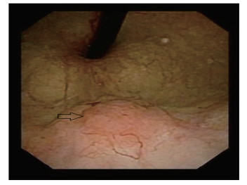 | 图 1 术前膀胱镜检查见膀胱左侧壁1个乳头样肿物 |