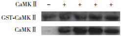 | 图 3 Western blotting检测CaMKⅡ与GST-CT1结合 Fig.3 Binding of CaMKⅡ to GST-CT1 detected using Western blotting |